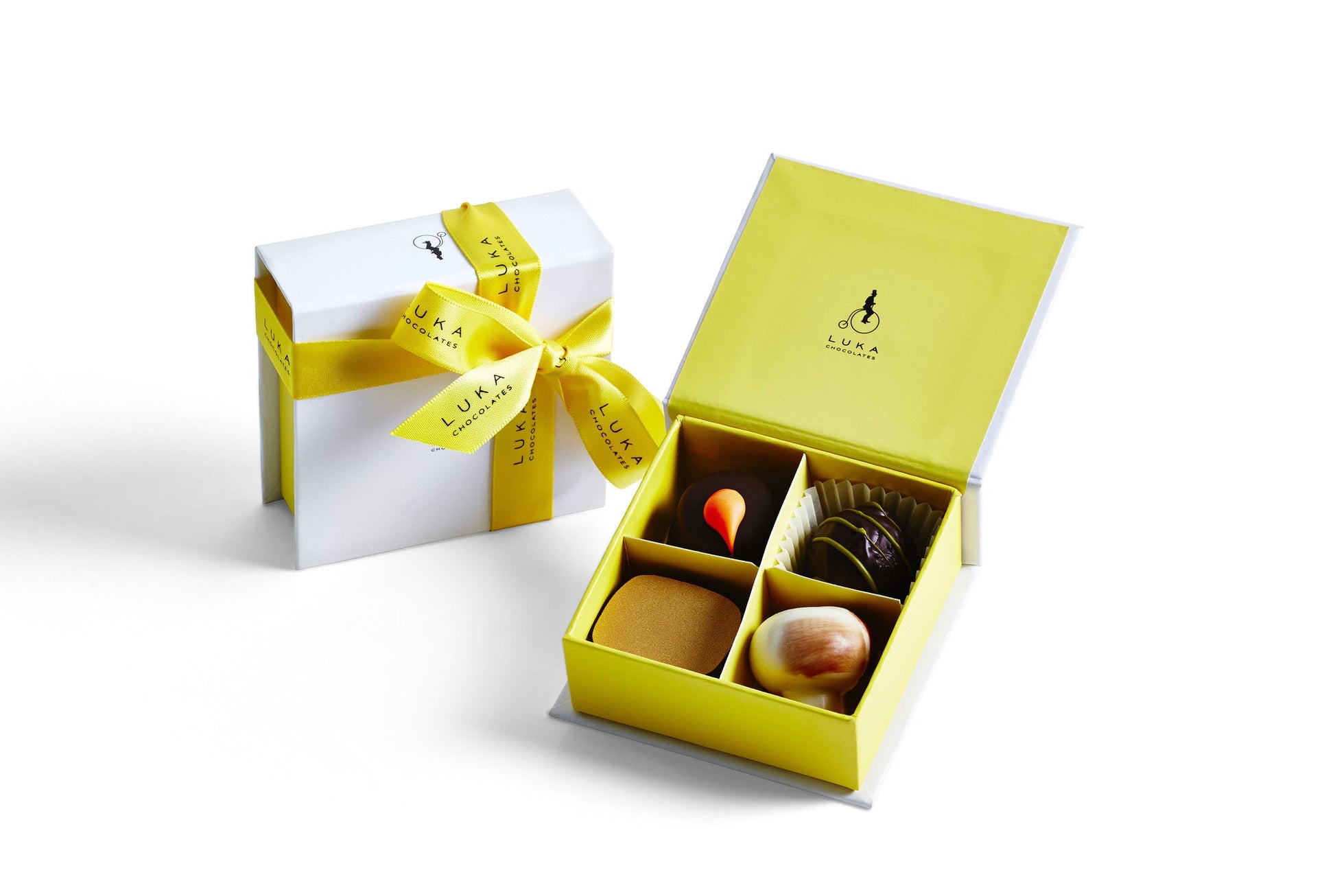 4 handmade chocolates in a luxurious gift box.