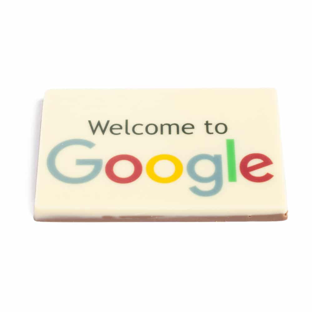 These business card sized chocolate bars are the perfect option to promote your product or brand in an innovative and unique way. Simply upload your full colour artwork and we will print it directly on a layer of white chocolate which is backed by a layer of milk chocolate. The bars are individually packaged in a clear, tight fitting bag. If you are looking for a clever way to give out corporate promotional business cards, a novel corporate gift or want an affordable giveaway at one of your events our chocolate business cards are the perfect solution.
